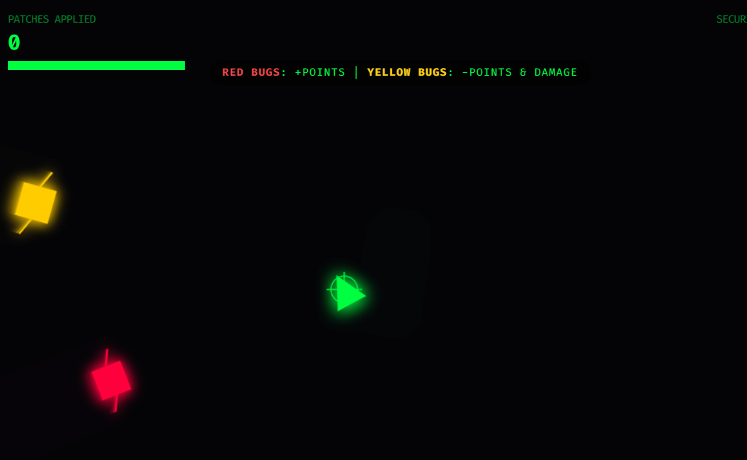 - The Mission: Fix the system by "patching" as many red bugs as possible while maintaining system integrity (health).